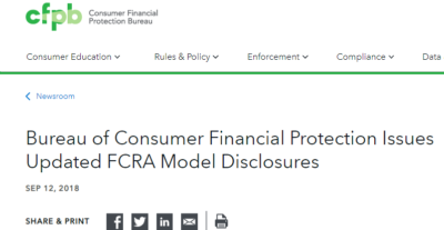 As a follow up to CSI’s Client Advisory on September 6, 2018, the Bureau of Consumer Financial Protection (formerly the Consumer Financial Protection Bureau) has recently released a revised Fair Credit Reporting Act (FCRA) Summary of Rights effective September 21, 2018. The new FCRA Summary of Rights will replace any existing FCRA Summary of Rights.