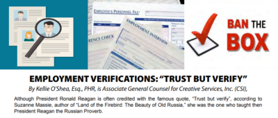 CSI Associate General Counsel Kellie O’Shea, Esq., PHR, discusses the importance of and best practices in conducting employment verifications for potential employees in a recent article published in The 2018-19 edition of The Background Screening Resource Guide.